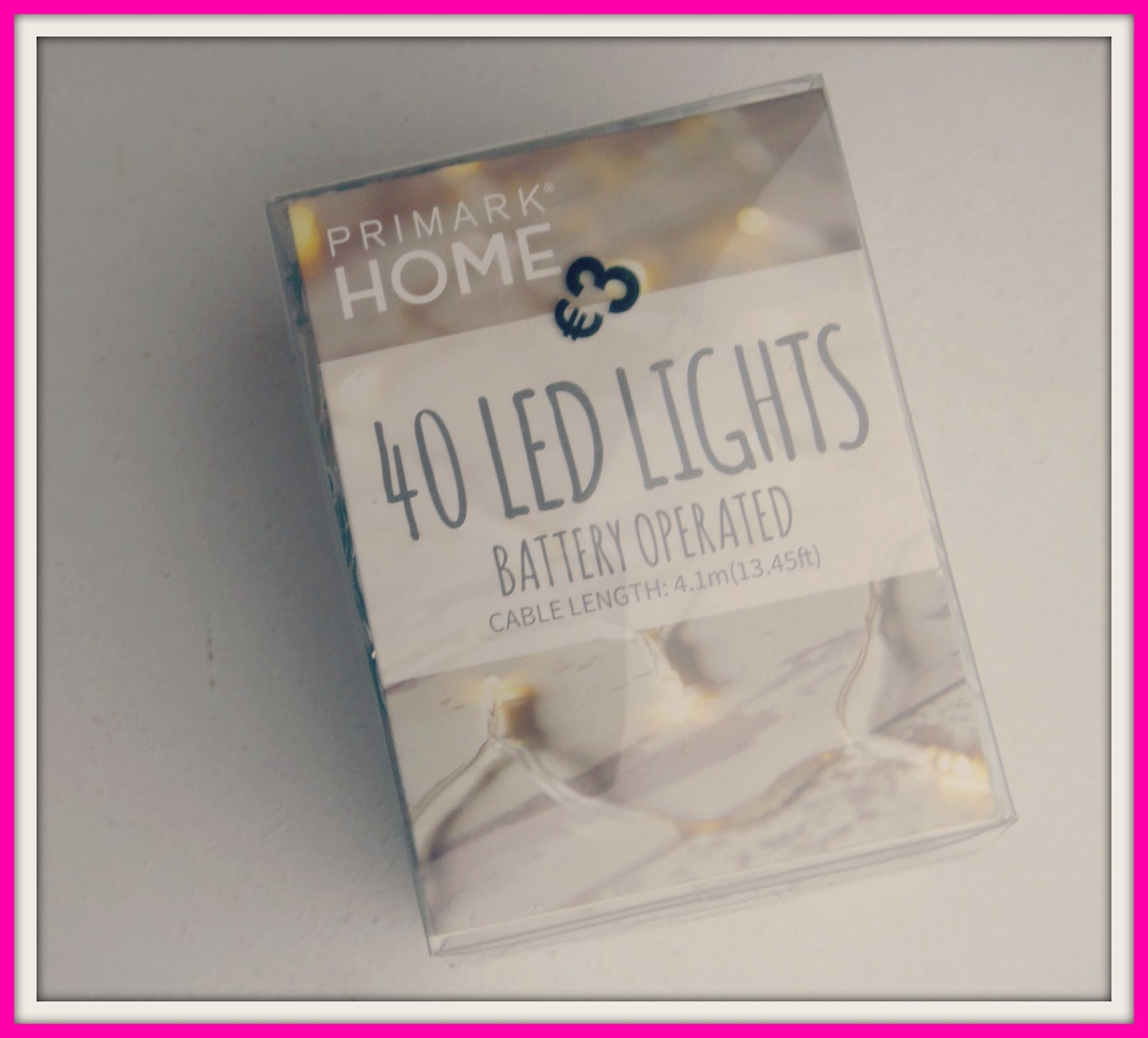 Luzes Led - E claro que não se vai á Primark sem trazer umas luzes Led, né? Eu desta vez trouxe umas muito simples de 40 Leds, para colocar á volta de uma estante de quadrados, acho que fica super giro! 3.00€