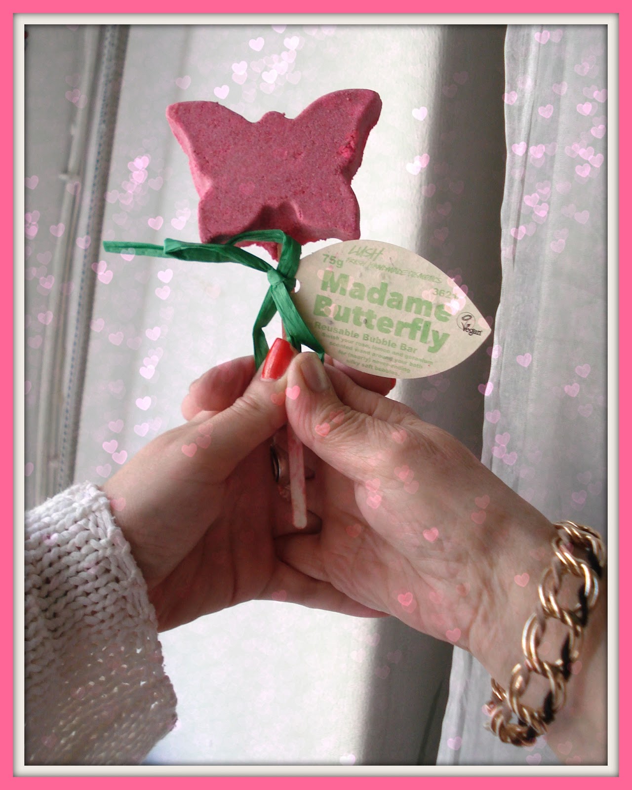 Madame Butterfly da Lush - Reusable Bubble Bar - Uma borboleta com aroma a rosa, limão e gerânia para umas (quase) infindáveis bolhas de espuma e água Cor de Rosa!!